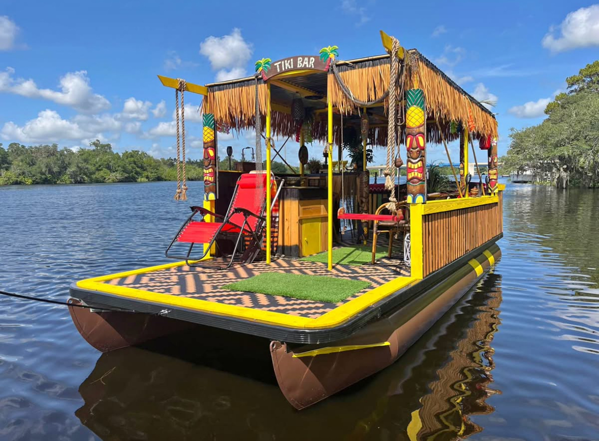 Step aboard our tiki-style pontoon — stable, spacious, and shaded for comfortable cruising. Enjoy cushioned seating, Bluetooth music, a cooler with ice, and easy boarding so everyone can relax and enjoy the ride.